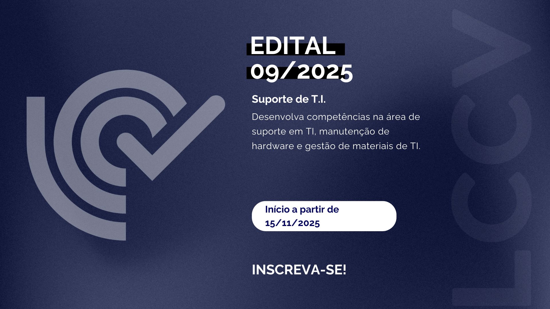 28 out Edital 9/2025 – Seleção de bolsistas para o projeto Suporte de Redes No período de 28 de outubro de 2025 a 02 de novembro de 2025 estarão abertas as inscrições para... Leia mais